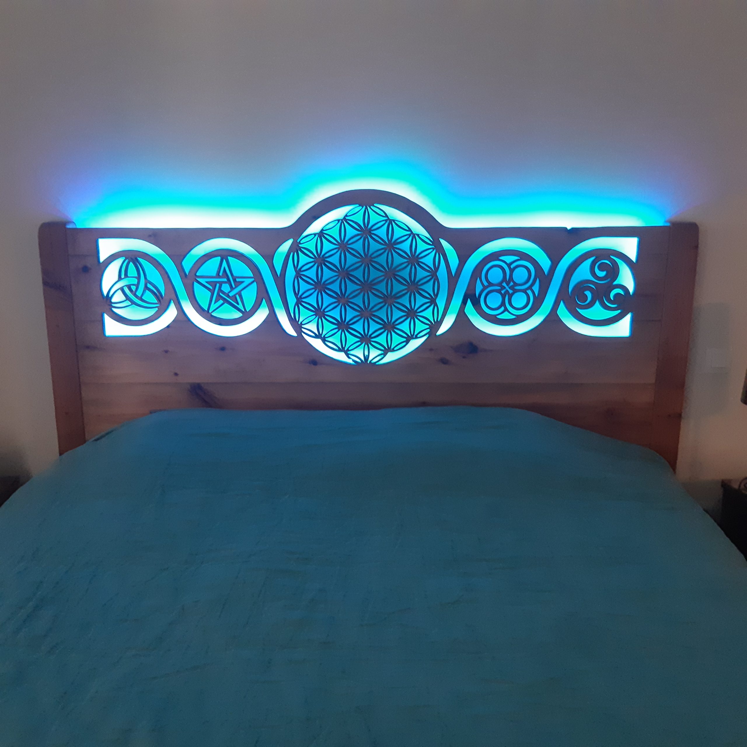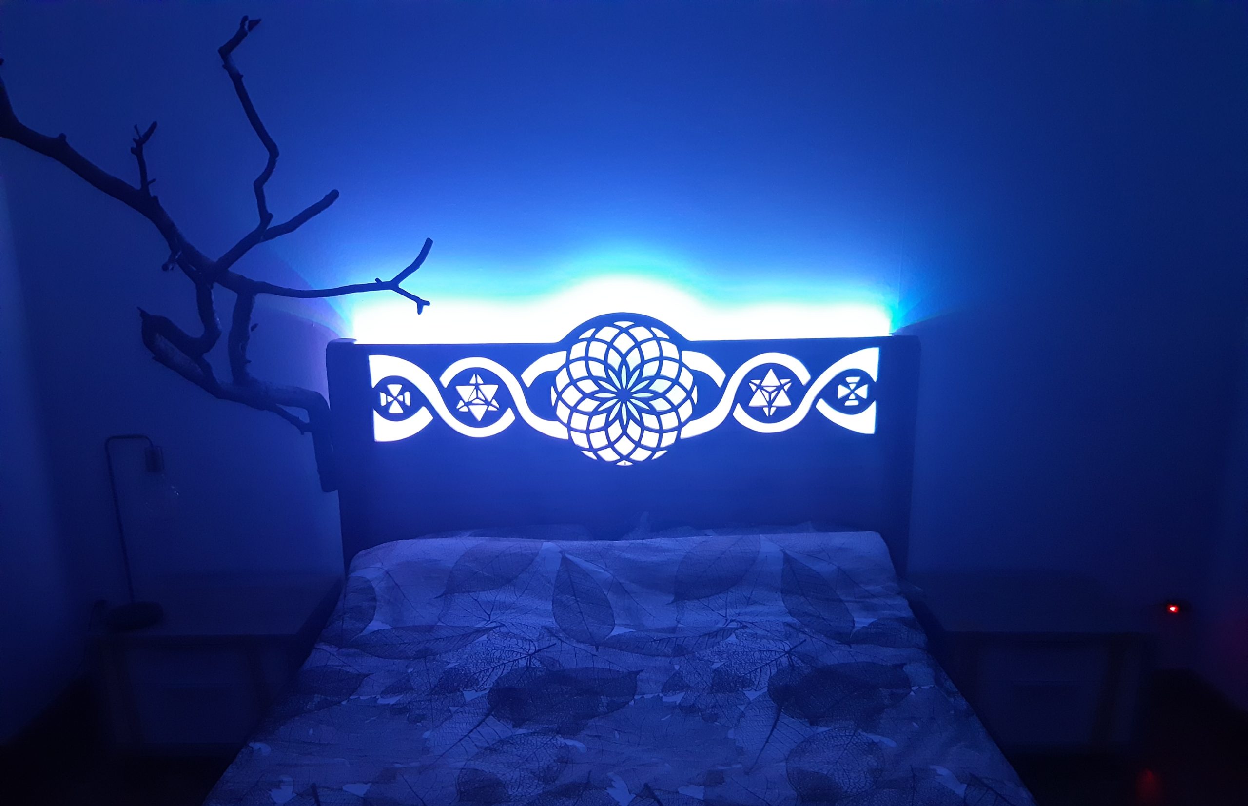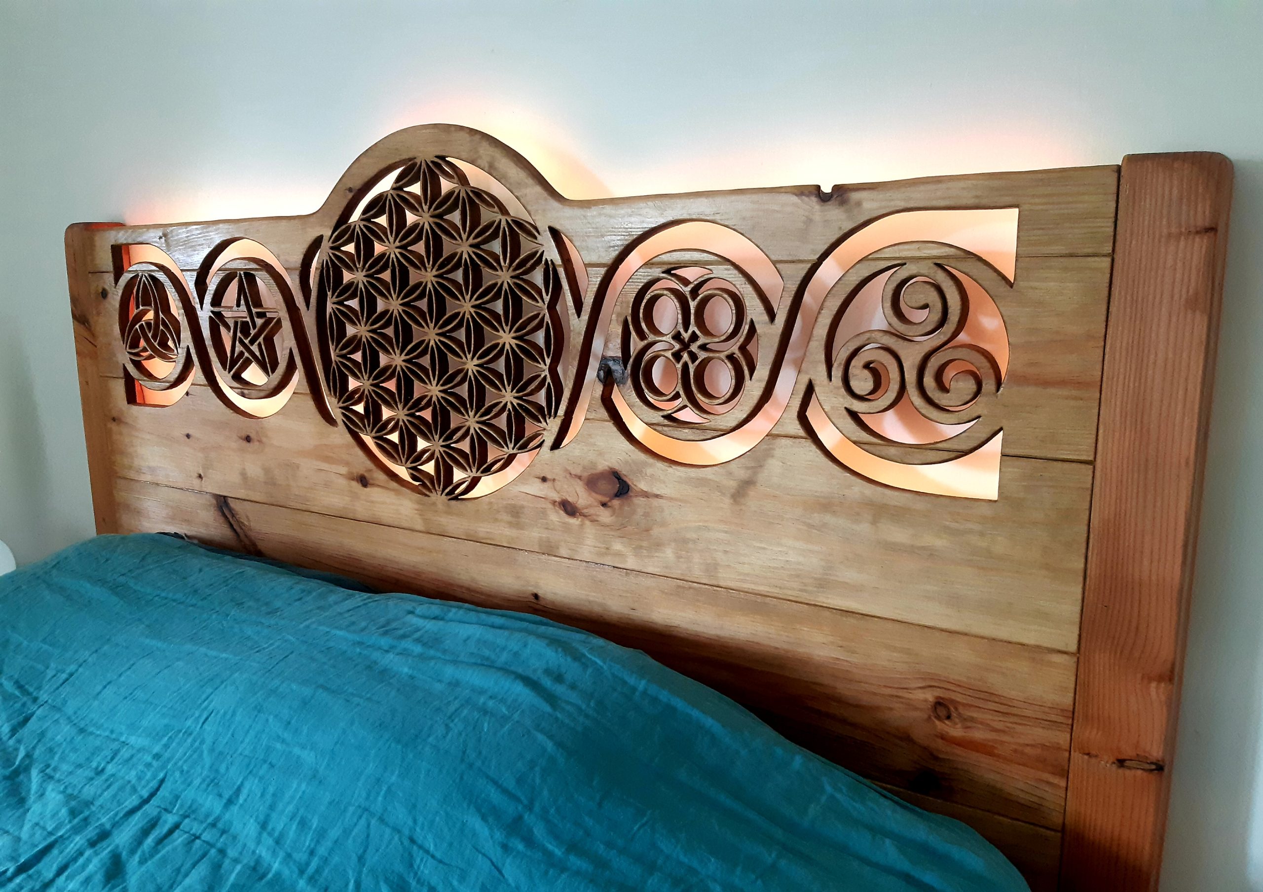 Each headboard is a unique fusion of sacred geometry and natural wood, brought to life through meticulous hand-carving. Every curve, symbol, and pattern is created with purpose, inviting balance, harmony, and a gentle sense of presence into your bedroom.