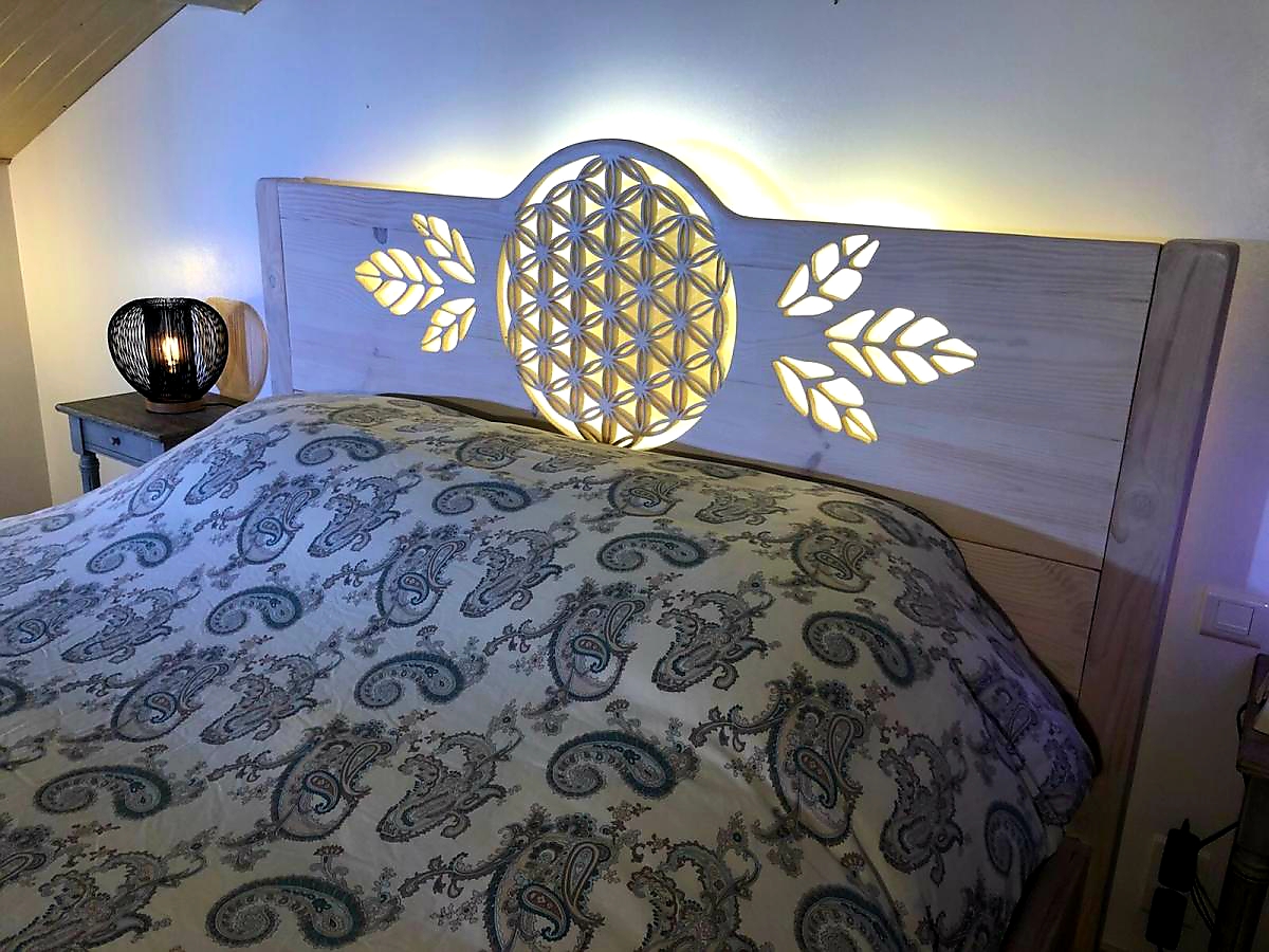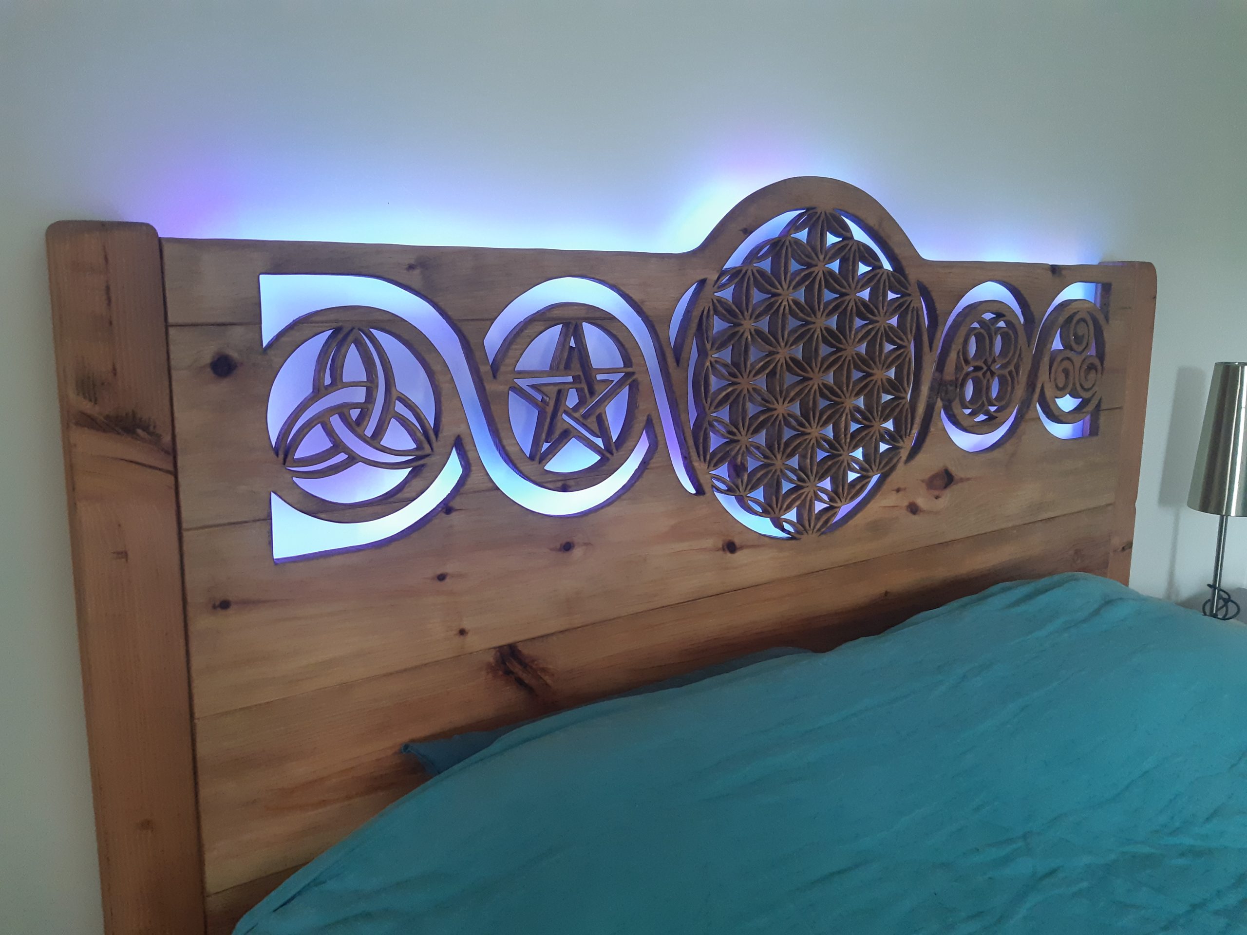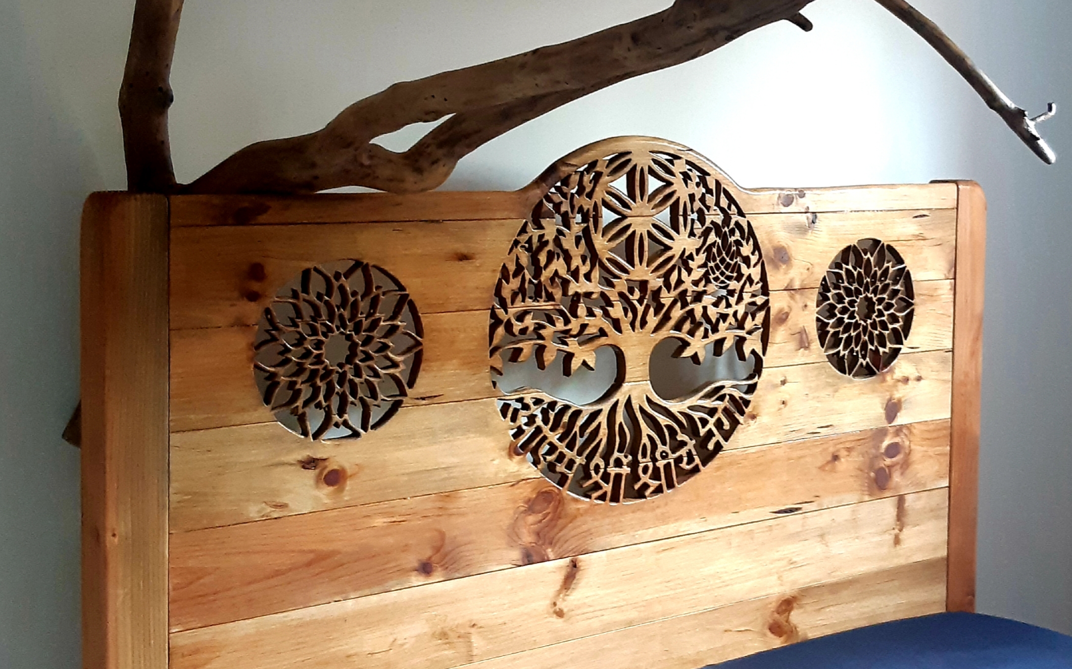 Each headboard is a unique fusion of sacred geometry and natural wood, brought to life through meticulous hand-carving. Every curve, symbol, and pattern is created with purpose, inviting balance, harmony, and a gentle sense of presence into your bedroom.