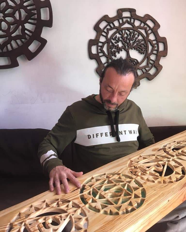 Intricate patterns are meticulously carved using traditional woodworking techniques